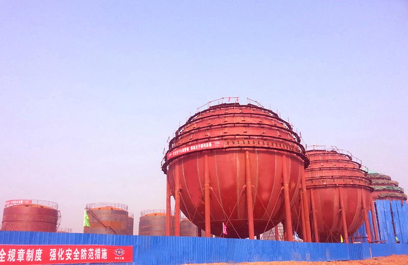 神華集團公司榆神工業區清水煤化學工業園化工物料貯運項目烴烯罐區多臺2500 m3、1000 m3、600 m3球罐安裝工程