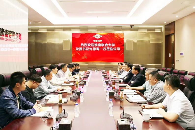 10月11日,中國(guó)化學(xué)工程第三建設(shè)有限公司黨委書記、董事長(zhǎng)占德慶在合肥總部會(huì)見淮南聯(lián)合大學(xué)黨委書記許德壽,黨委副書記、副校長(zhǎng)劉銀一行,雙方就深化校企合作進(jìn)行了深入溝通交流。