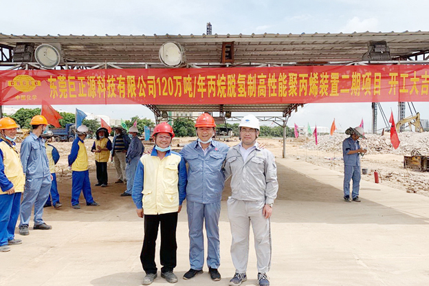7月的東莞,風和日麗百花香。20日上午,受江蘇分公司經理姚景浩邀請,東莞巨正源科技有限公司總經理李漢初等業主領導、廣石化監理公司領導,共同出席東莞巨正源120萬噸/年丙烷脫氫制聚丙烯二期項目開工儀式。