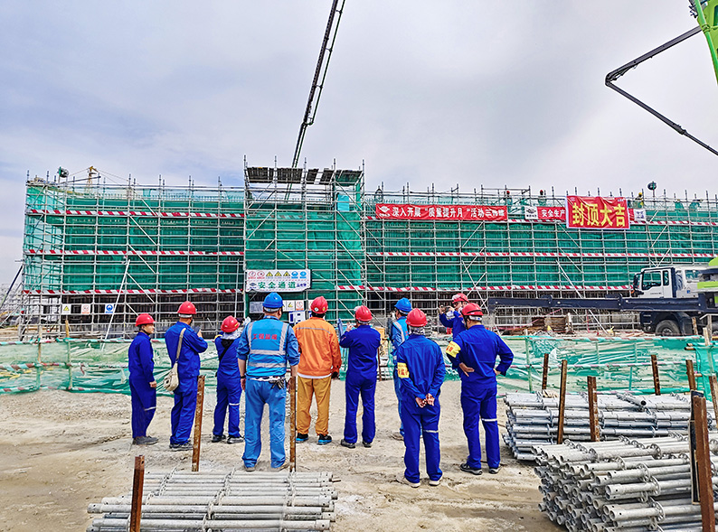 北京分公司承建該項目多個核心單元,涵蓋汽車裝卸站臺、汽車衡及磅房、液體碼頭、裝車變電所、換熱站、各類停車場及配套給排水與消防管網(wǎng)系統(tǒng)工程等。這次封頂?shù)默F(xiàn)場操作間是汽車裝卸系統(tǒng)工程中最重要的建筑,采用防爆結構設計,建筑面積1000平方米,地下深度3.8米,地上建筑高度5.9米,其建設進度直接關系到系統(tǒng)整體投用時間。自今年5月開工以來,面對技術、工期等多重挑戰(zhàn),項目團隊科學策劃、精準施策,通過強化過程管控、優(yōu)化資源配置,在嚴把安全質量關的前提下全力搶抓進度,最終圓滿實現(xiàn)這一重要構筑物的封頂,為下一步安裝施工的全面展開奠定了堅實基礎,展現(xiàn)了卓越的項目管理與協(xié)同攻堅能力,贏得業(yè)主與監(jiān)理單位的一致好評。