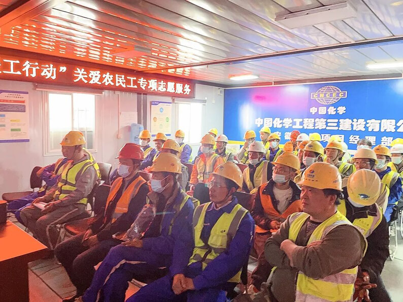 公司20多名青年志愿者踴躍報名、走進現(xiàn)場,開展普法宣傳、安全宣傳、二十大精神進基層以及愛心慰問等活動,向農(nóng)民工們宣傳治安防范、消防安全、勞動法規(guī)等與農(nóng)民工切身利益息息相關(guān)的法律知識,并結(jié)合實際,運用通俗易懂的語言,宣講黨的二十大報告精神。